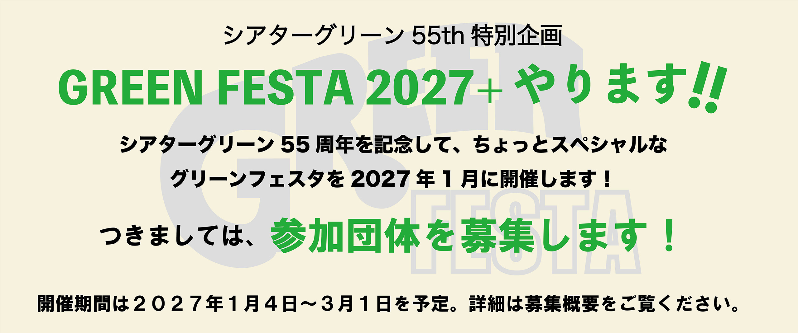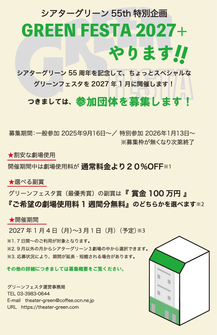 シアターグリーン55th 特別企画 GREEN FESTA2027+ やります!!(2025年9月20日追記)